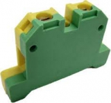 Borne terra verde-amarelo, para cabos até 2,5mm, fixação em trilho TS32/TS35, corrente 24A