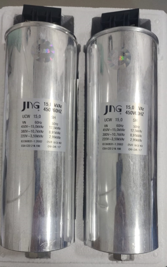 | Desenvolvidos para aplicação em Correção do Fator de Potência para instalações elétricas de baixa tensão. Os Capacitores Trifásicos para Correção de Fator de Potência JNG são constituídos internamente de filme de polipropileno e resinas biodegradáveis e com invólucro de alumínio cilíndrico totalmente encapsulado que permite a auto regeneração e excelente dissipação de calor. Em conformidade com a Norma IEC 60831-1